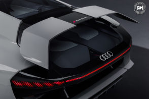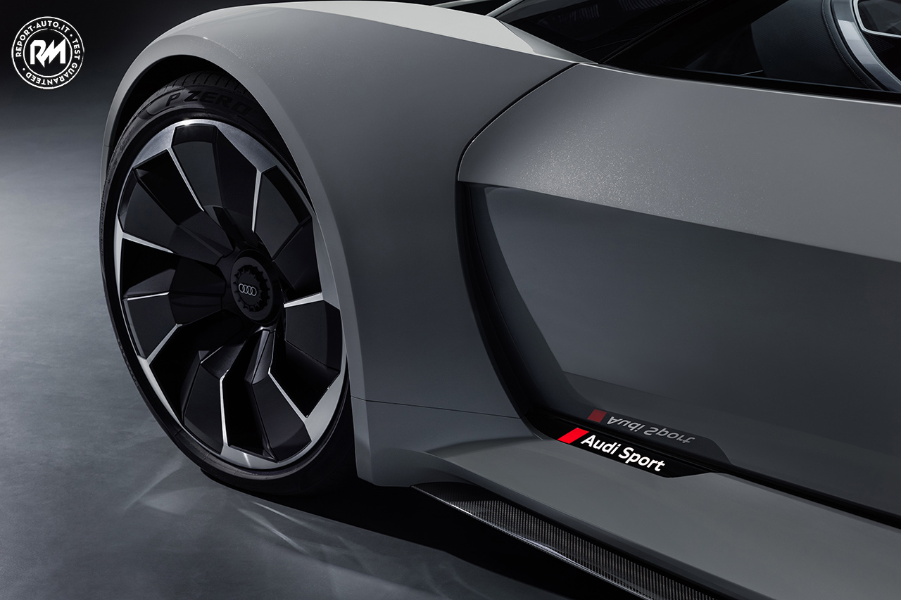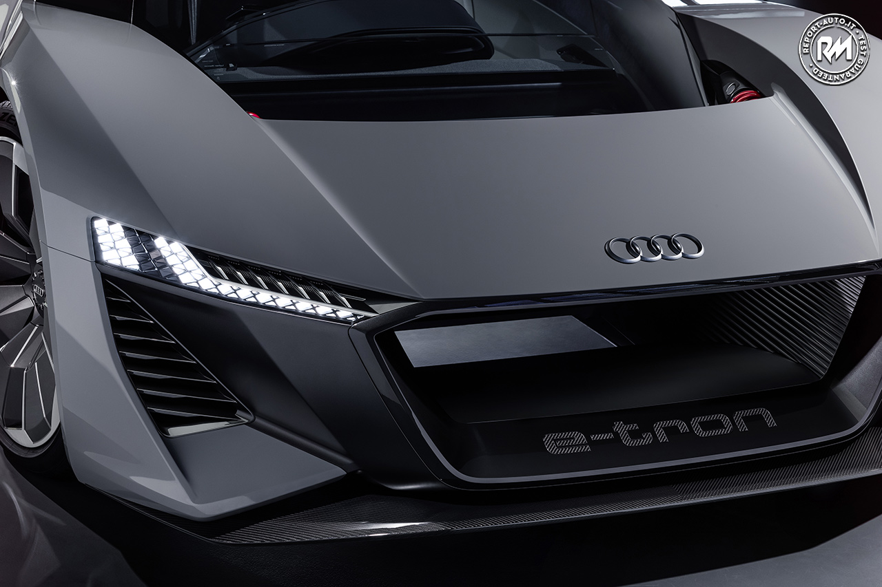 La calandra single frame, dal taglio decisamente ampio, domina il frontale. Il logo Audi è posizionato in alto, dove convergono le linee del cofano. Una caratteristica peculiare delle sportive dei quattro anelli. Le prese d’aria, come accennato, canalizzano i flussi di raffreddamento verso i freni e il motore elettrico anteriore. I gruppi ottici ampi e piatti, con tecnologia matrix LED e abbaglianti laser, completano la fisionomia di PB18 e-tron.