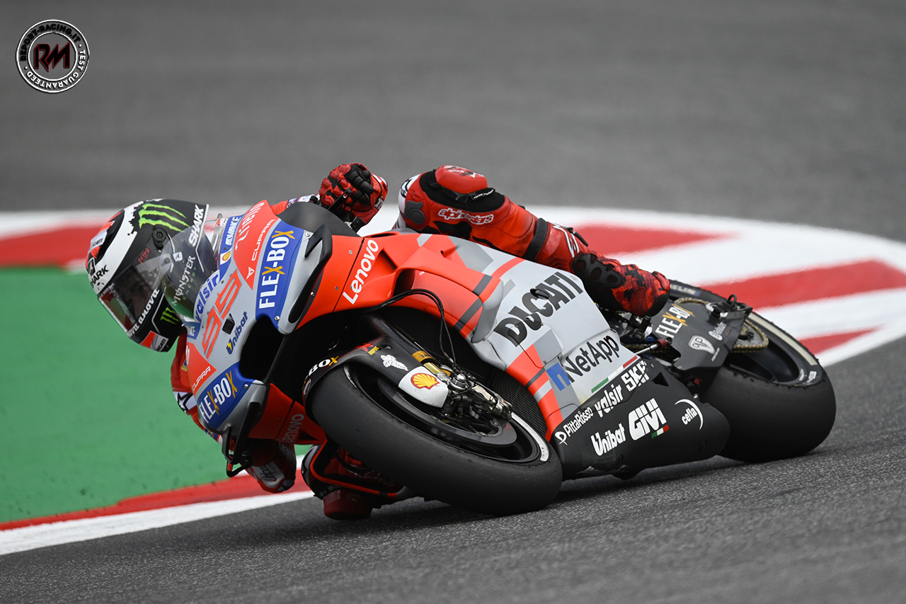Misano è un circuito dove la simbiosi moto / pilota deve esser perfetta per andare forte, Jorge Lorenzo e la sua Ducati Desmosedici GP sono in grande armonia, dalle prime libere si capisce che sarà lui l’uomo da battere.