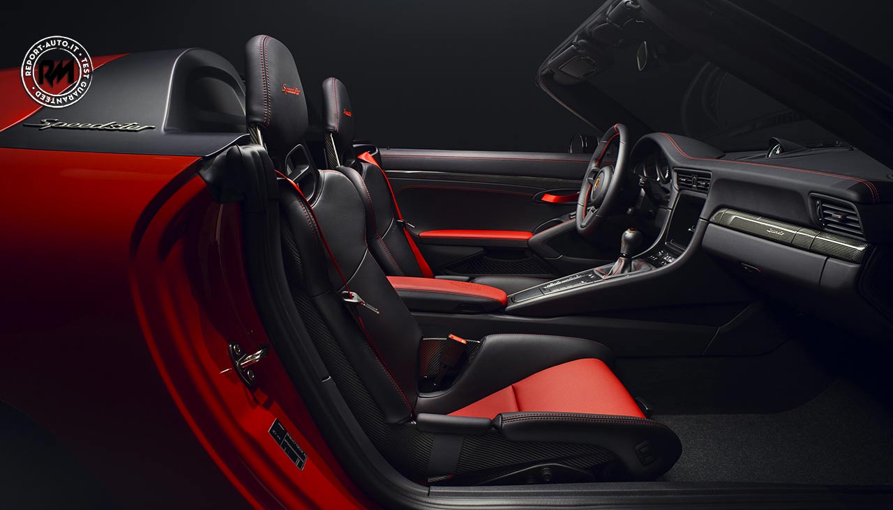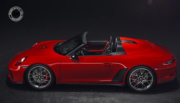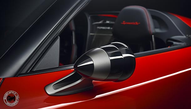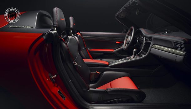 La vernice rossa è un riferimento alla 911 speedster del 1988, le nuove ruote a raggi incrociati da 21 pollici e gli interni in pelle nera creano un aspetto elegante e sportivo.