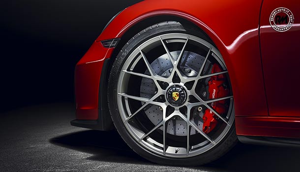 Oltre alla verniciatura accattivante, la Porsche 911 Speedster offre il bloccaggio centrale dei cerchi, questi ultimi da 21 pollici con design a raggi incrociati simile a quello alle 911 RSR e la GT3 R.
