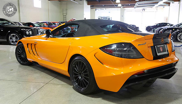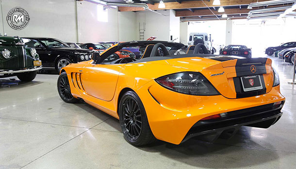 La Mercedes-Benz SLR 722S Roadster McLaren Edition in questione è probabilmente la più accattivante di quei sei esemplari, grazie alla verniciatura bicolore ed a elementi nero lucido.