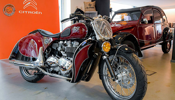 Un progetto originale per celebrare i 70 anni della Citroën 2CV , di grande interesse nel settore dei motori, sia per gli appassionati delle quattro ruote che per gli amanti delle motociclette: una contaminazione tra i due mondi legittimata dalla creatività e dall’innovazione.