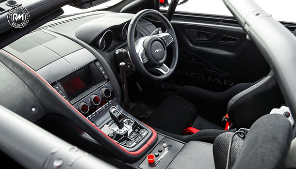 Costruita secondo le specifiche FIA, la Jaguar F-Type Rally ha freni e sospensioni modificate, un roll-bar come gabbia di protezione, sedili da corsa con attacco a sei punti, estintore e cofano motore riprogettato.