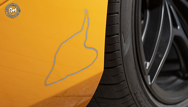 I cerchi in lega a cinque raggi in Satin Black della gamma MSO Bespoke esaltano l’arancione della carrozzeria, mentre nell’abitacolo propone cuciture a contrasto realizzate in filo McLaren Orange – per rimarcare il colore che ha accompagnato uno dei momenti di maggior successo del marchio.