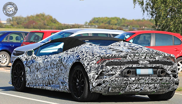 Nuovo sarà anche il posteriore della Huracan, con un’ala maggiorata ed una inedita doppia coppia di terminali di scarico.