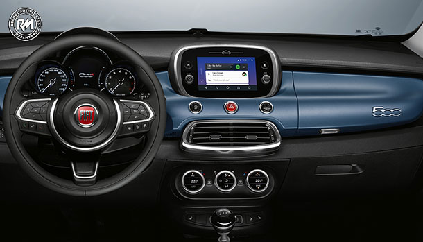 Tra le livree disponibili, inoltre, Bianco Gelato, Nero Cinema, Grigio Moda e Blu Italia. Gli interni sono caratterizzati da rivestimenti specifici con cuciture blu e dalla fascia plancia Blu Jeans opaco.