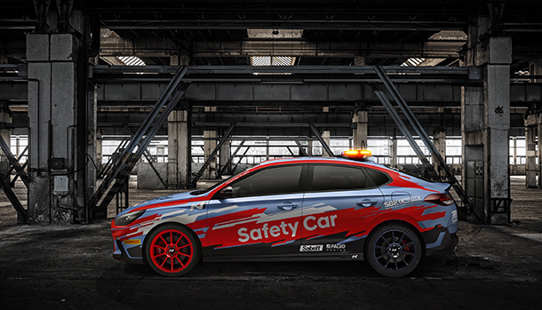 La Hyundai i30 N Safety Car per l’occasione ha ricevuto modifiche mirate alla barra luminosa posteriore, sedili anatomici della Sabelt e cerchi in lega da 19 pollici.
