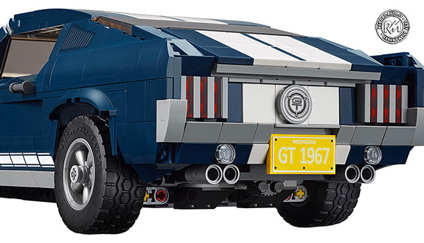 Logo Mustang , badge GT e una selezione di targhe aggiungono il giusto tocco finale a questo straordinario modello LEGO Creator Expert.