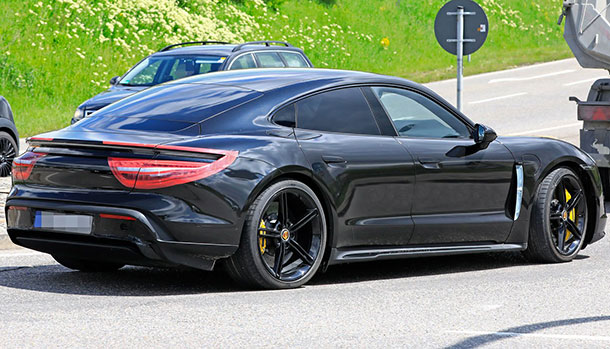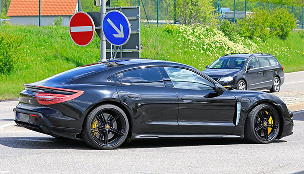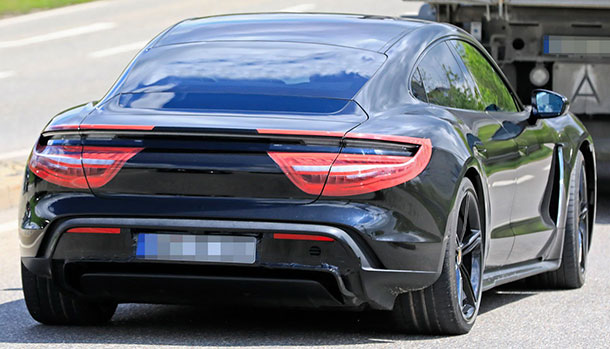 Un estrattore aria completa un posteriore privo di terminali di scarico, del resto, la Porsche Taycan è puramente elettrica.