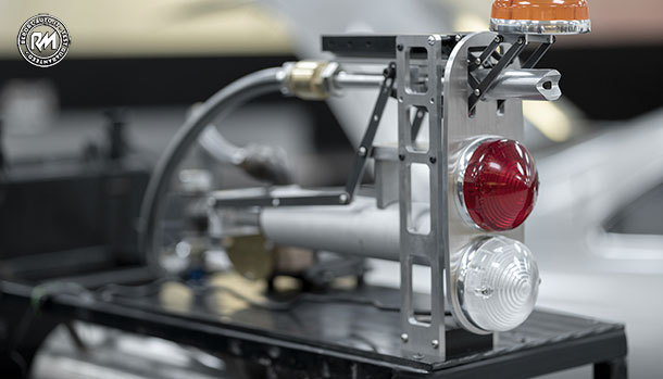 Le pistole che compaiono dalle luci anteriori sono state una sfida particolare perché, nel mondo del cinema, siamo in grado di utilizzare miscele di gas infiammabili combinate con un sistema di accensione per produrre un effetto di fiamma e rumore.