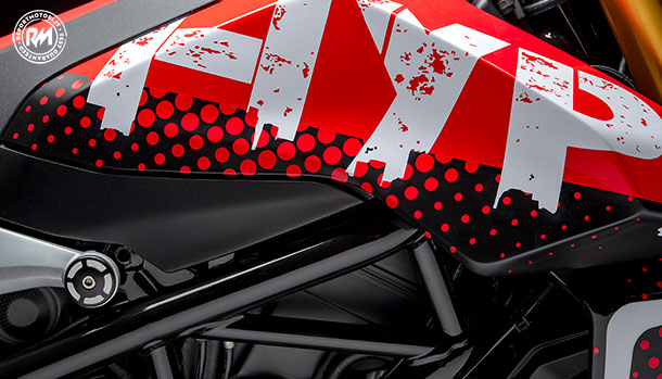 Ha una doppia personalità, racing ed urban warrior, con dettagli tipici di una moto esclusiva: la sua grafica è forte, ispirata ai graffiti delle aree metropolitane.