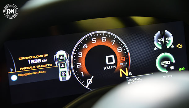 La strumentazione è totalmente digitale, lo schermo può essere configurato a proprio piacimento e riporta tutto ciò che si vuole sapere sia sullo stato vitale dell’auto sia sull’ambiente che circonda il veicolo, vista anche una telecamera retro dalla definizione particolare elevata.