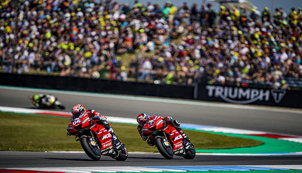 Il Gran Premio di Olanda, ottavo round del Campionato Mondiale #MotoGP 2019 in scena sullo storico TT Circuit di #assen, si è concluso con #andreadovizioso e #danilopetrucci rispettivamente in quarta e sesta posizione. Entrambi i piloti del Ducati Team, partiti dalla terza e dalla quarta fila, hanno trovato un buono spunto in partenza e sono riusciti ad inserirsi nel gruppo di testa dopo soli quattro giri, con Dovizioso in quarta posizione davanti al compagno di squadra.