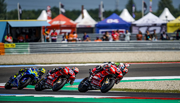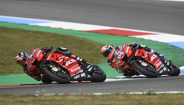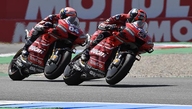 Col prosieguo della gara, Dovizioso e Petrucci sono poi stati protagonisti di diversi sorpassi e controsorpassi in un gruppo di quattro piloti insieme a Mir e Morbidelli. Nell’arrivo in volata Dovizioso ha difeso con successo la quarta posizione sotto la bandiera a scacchi mentre Petrucci ha chiuso la gara in sesta posizione, a soli cinque decimi dal compagno di squadra.