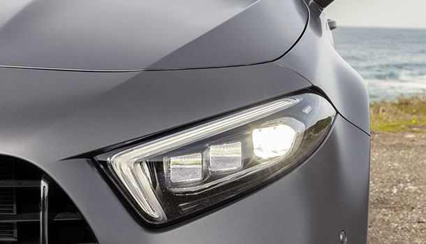 Le nuove A 45 4MATIC+ e #cla454matic hanno una matrice estetica ancora più decisa rispetto alle precedenti generazioni. Gli esterni esprimono puro piacere di guida già a vettura ferma. Per la prima volta, anche la categoria delle compatte, adotta la mascherina del radiatore specifica AMG, con il profilo allargato verso il basso e dodici lamelle verticali, chiaro segno di appartenenza alla famiglia delle vetture Performance AMG. Allo stesso tempo, il caratteristico “shark nose”, i fari sottili dal taglio netto e il cofano motore con i powerdome – piatto e aerodinamico – abbassano la linea del frontale, facendolo apparire estremamente dinamico e proteso in avanti.