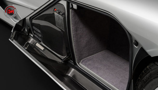 L’Alcantara ricopre cruscotto e sedili passeggeri anteriori mentre il posto guida è stato rifinito in pelle “Woking Grey”.