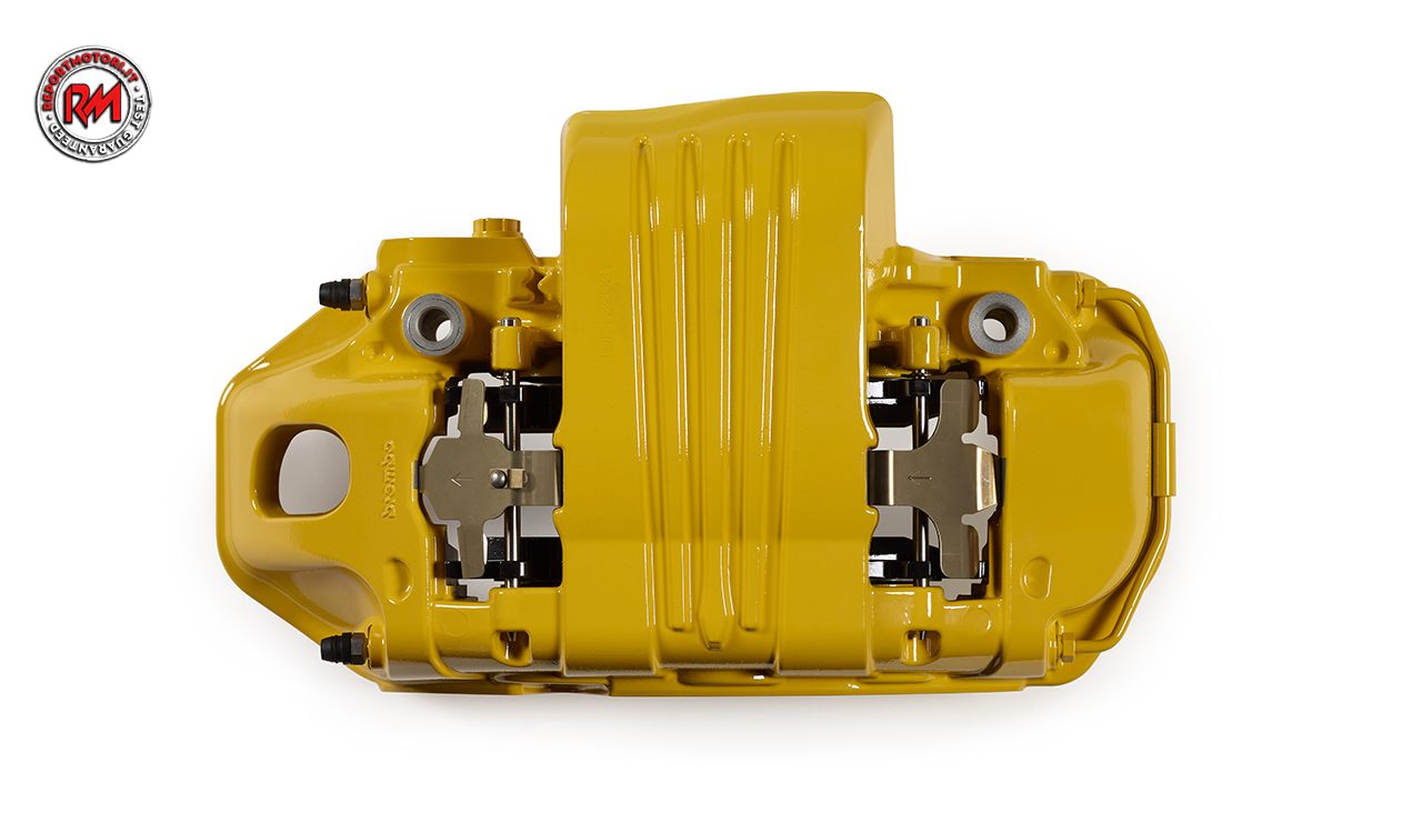 La pinza integra un pionieristico condotto di raffreddamento che aumenta il flusso d’aria intorno alle pastiglie dei freni e, grazie a questa ventilazione forzata, funziona a temperature più basse e quindi garantisce prestazioni migliori e più costanti.