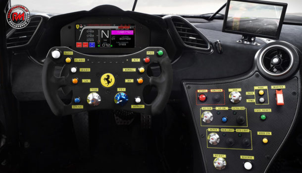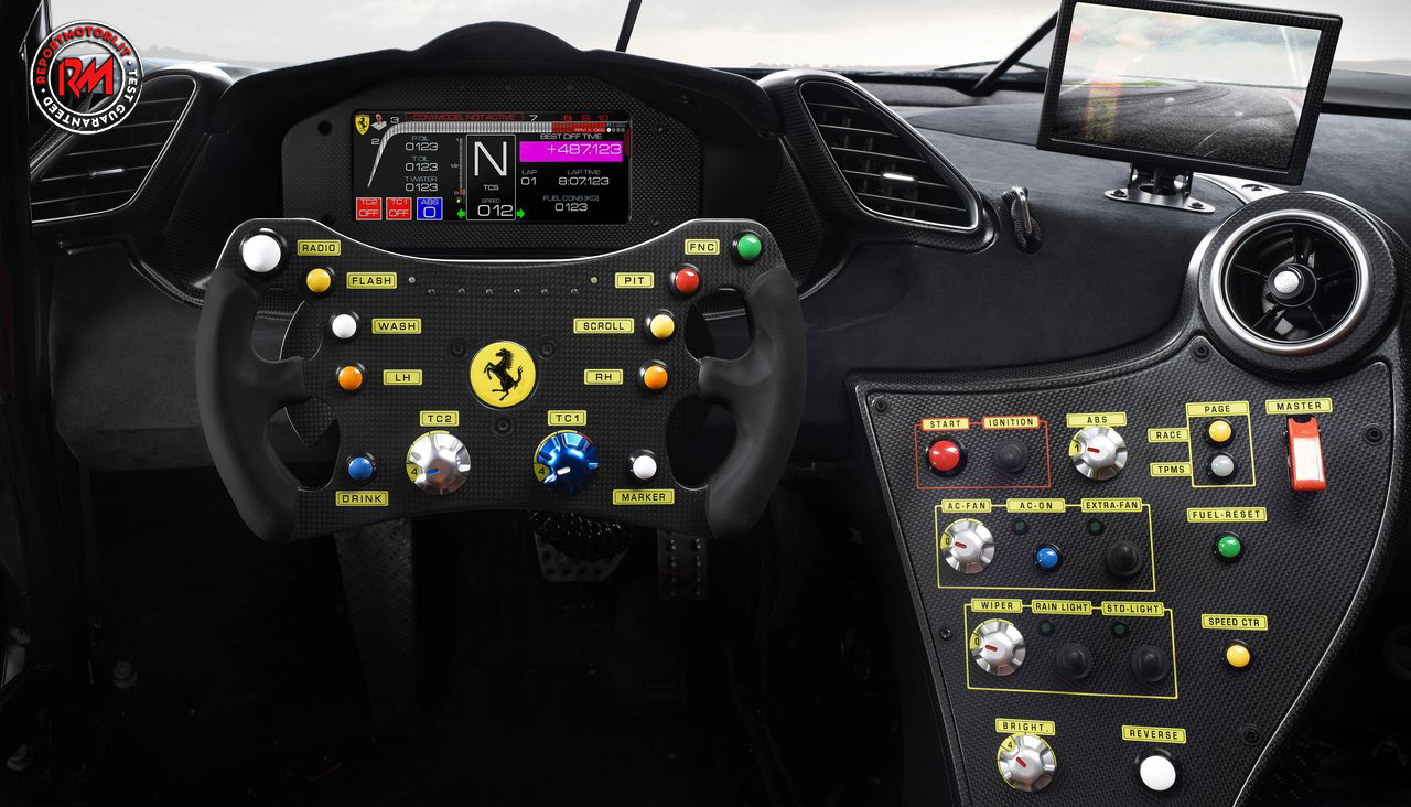 All’interno dell’abitacolo troviamo un nuovo volante, chiaramente ispirato alla FXX-K Evo ed alla 488 GTE, che ha trionfato quest’anno alla 24 Ore di Le Mans.