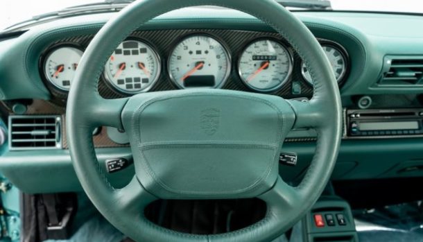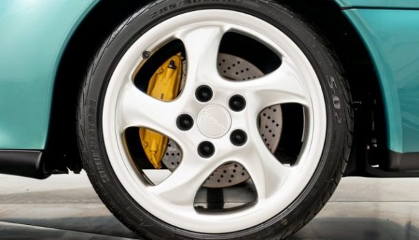 Una 993 Turbo S da urlo, un sei cilindri boxer turbo da 3,6 litri e 420 cavalli, per uno 0-100 km/h in 3,6 secondi ed una velocità massima di circa 296 km/h.