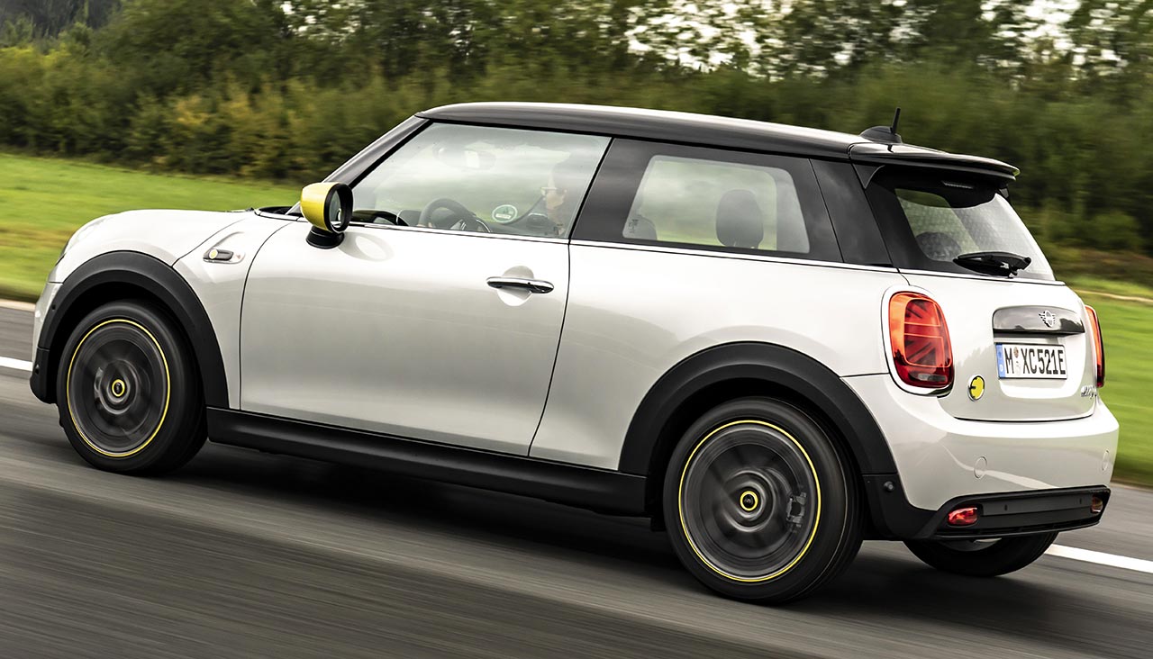 Poche sono le differenze estetiche con la normale serie: la presa per il rifornimento elettrico è posta sul posteriore destro, dove di solito trova posto il bocchettone per il rifornimento del carburante ed il logo “Mini Electric “ in rilievo evidenzia la diversa energia utilizzata.