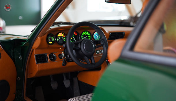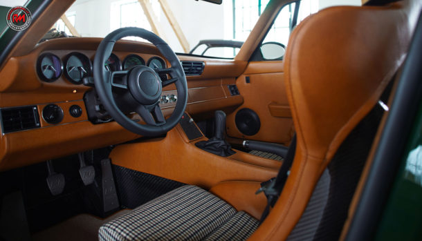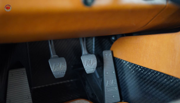Originali anche i cerchi, così come un classico sono le pinze freno gialle, al posteriore spicca il mega spoiler mentre all’interno, l’abitacolo è rivestito in pelle con sedili che presentano in parte, finiture in tessuto con trama a rondine.