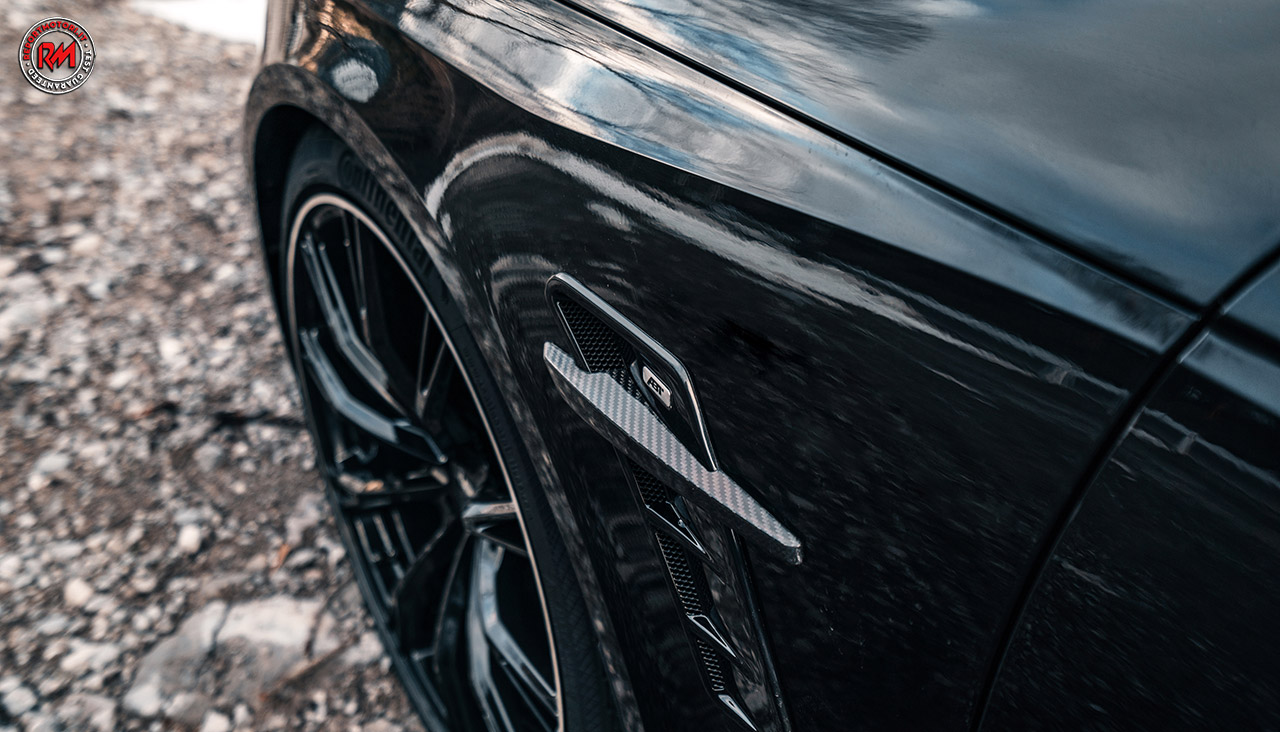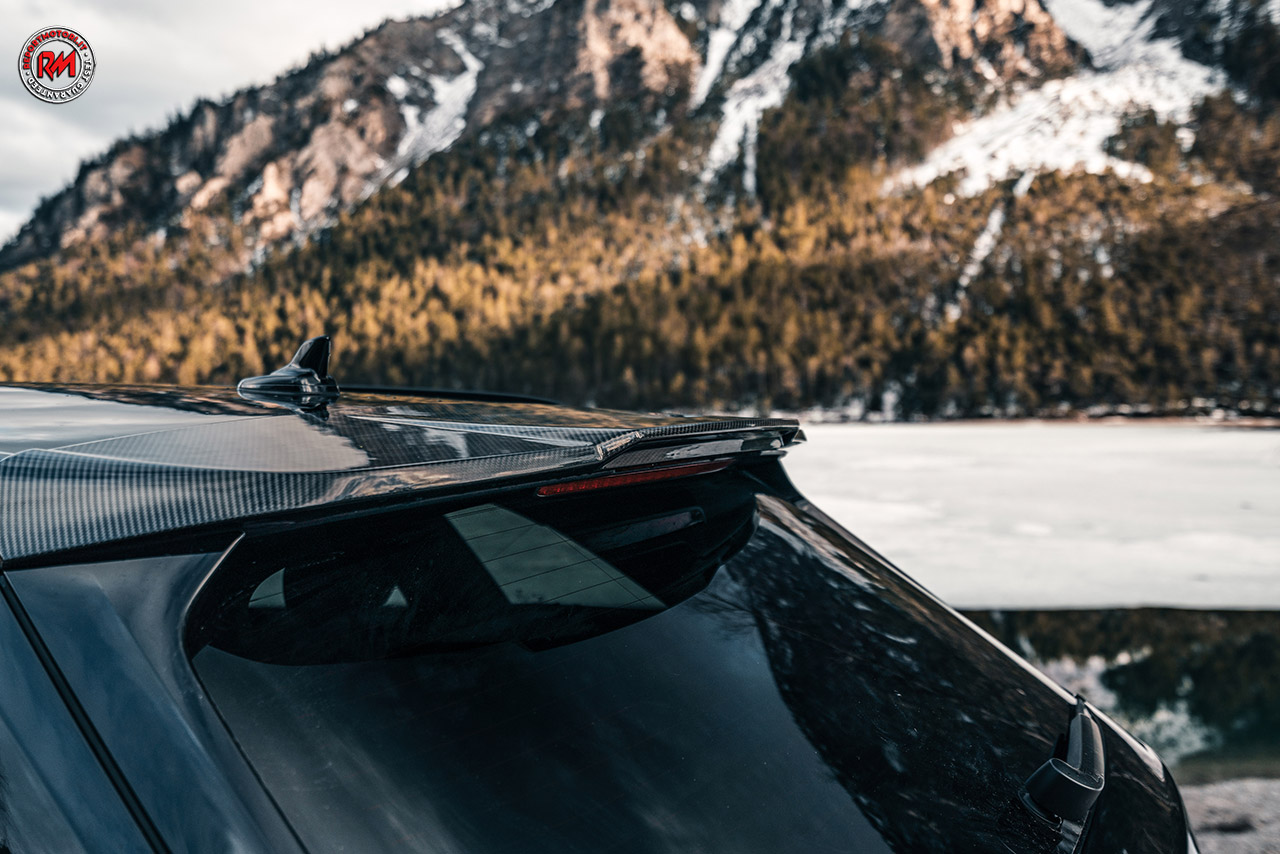 L’attenzione del preparatore non è stata rivolta solo al propulsore, ma anche alla carrozzeria per dare all’auto un aspetto grintoso: ed ecco il kit Aero Components II abbinato ad una rifinitura della carrozzeria in nero lucido e all’apposizione di uno spoiler posteriore CFRP ABT .
