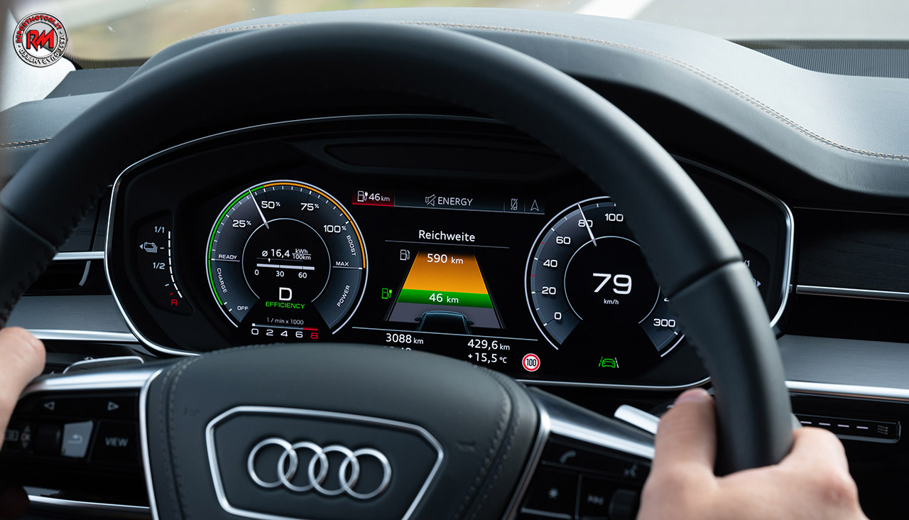 Ovviamente la tecnologia presente nella A8 è tanta: di serie tutti i servizi Audi connect oltre a tanti sistemi Adas e la presenza del concept digitale MMI touch response, cioè il comando vocale che riconosce le conversazioni o l’Audi virtual cockpit che dà informazioni sulla batteria e l’infotainment MMI plus a cui si è connessi.