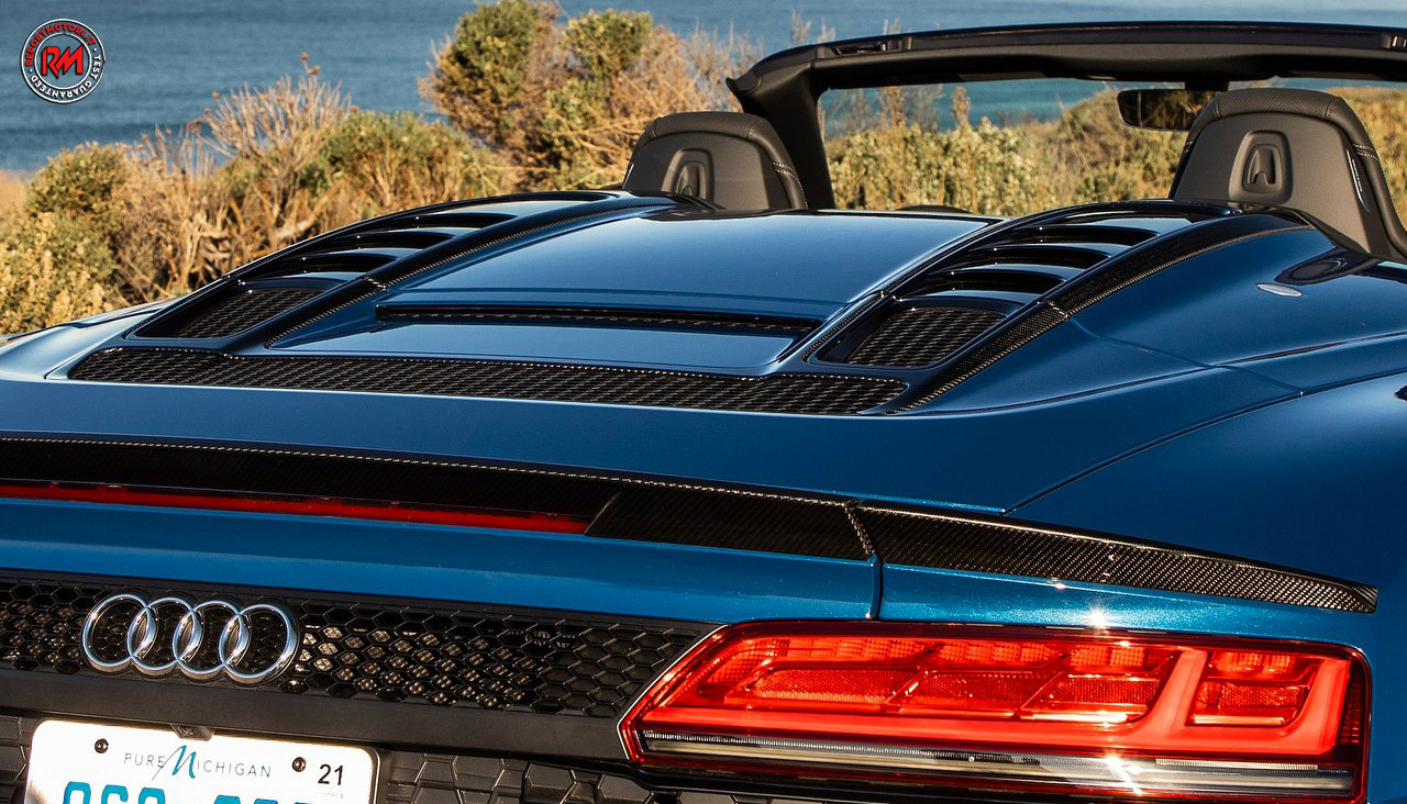 Un lifting che ha riguardato il nuovo paraurti anteriore, la nuova griglia anteriore a nido d’ape con badge R8, uno splitter anteriore ancora più pronunciato e marcate prese d’aria laterali.