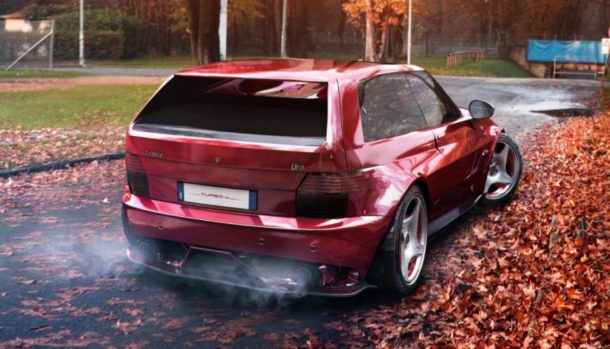 Per stessa ammissione del designer, il rendering della moderna Fiat Uno Turbo nasce sulla piattaforma dell’Alfa Romeo 4C, anche per poter ipotizzare l’utilizzazione di un motore turbo da 1.8 litri capace di sviluppare una potenza di 241 CV, affiancato dalla trazione posteriore.