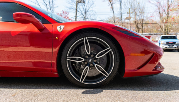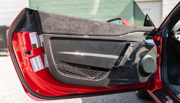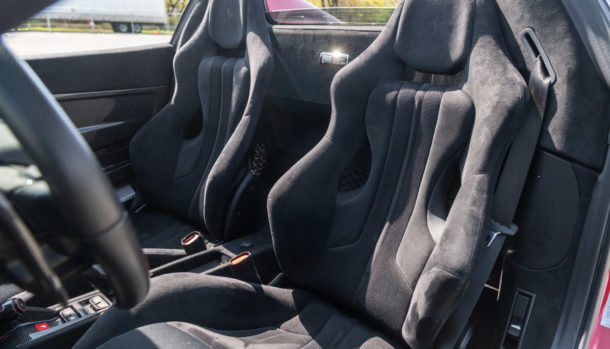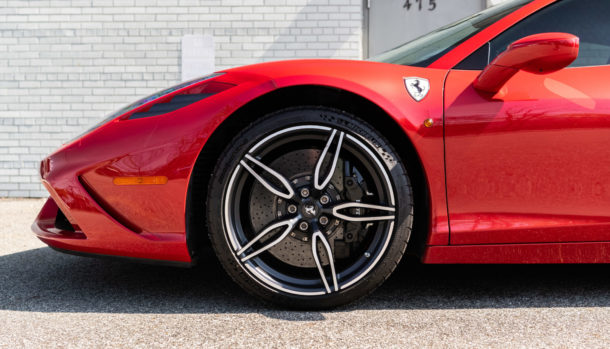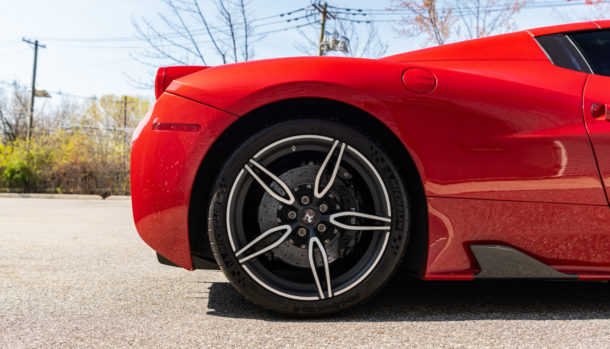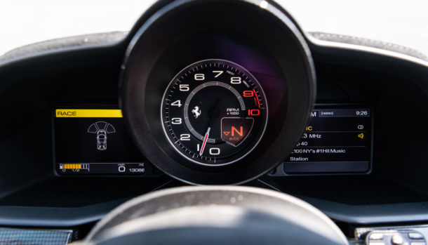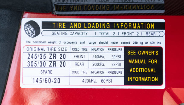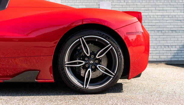 Ha percorso circa 20.920 chilometri, ha cerchi da 20 pollici a cinque razze, pneumatici Michelin Pilot Sport Cup 2 con misura differenziata tra l’assale anteriore e posteriore: 245/35 e 305/30.