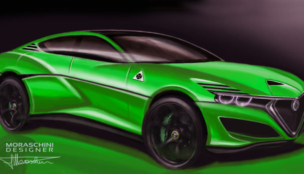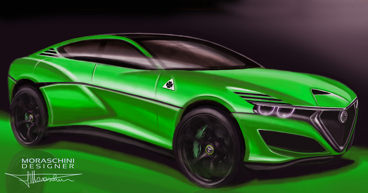 Dopo aver disegnato disegnato la Giulietta 2022 BEV e la Lamborghini GT Elettra, Stefano Moraschini realizza un nuovo rendering: si tratta della Alfa Romeo Pordoi Quadrifoglio .
