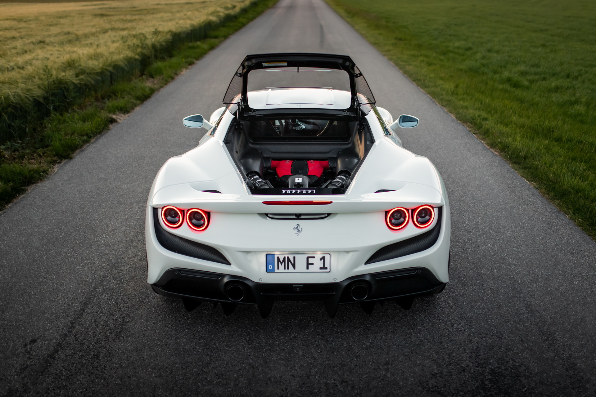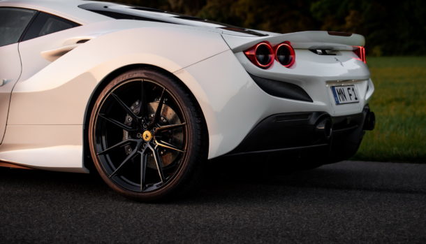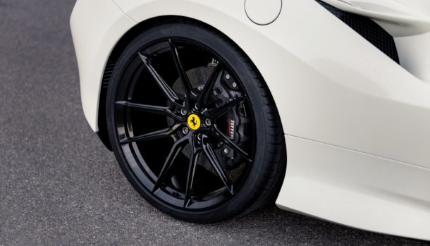 La F8 Tributo è stata ribassata per l’occasione di 35 mm per una migliore maneggevolezza e risposta nel misto.