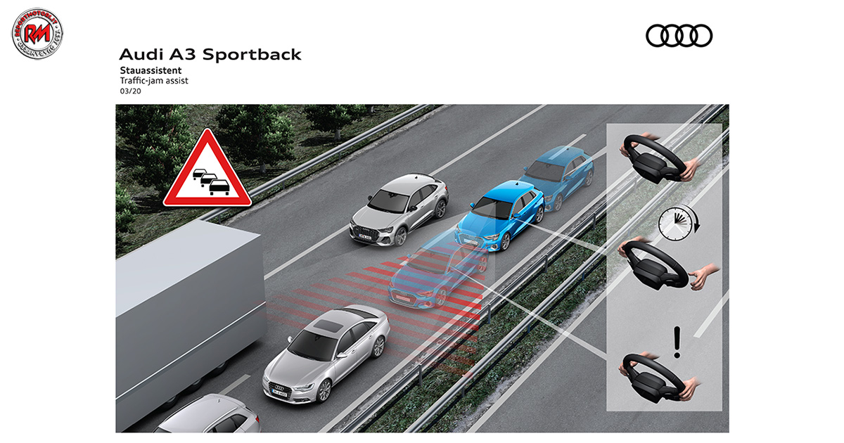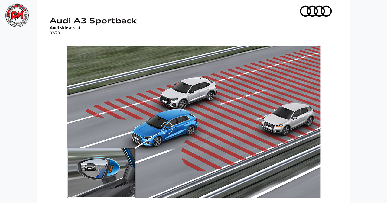 Oltre alla frenata automatica d’emergenza ed al supporto alle manovre, la nuova A3 si avvale anche del mantenimento di assistenza alla corsia.