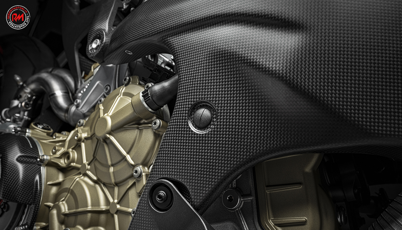 Non è solo un vezzo estetico questo, perché ad una velocità prossima ai 270 km/h, il downforce garantito da queste quattro ali (due per lato) è di 50 kg, circa 20 kg in più rispetto a quello prodotto sulla V4 R e V4 MY 2020.