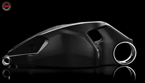 Anche la carena è in fibra di carbonio ed è dotata di appendici aerodinamiche biplano, di chiara derivazione Ducati MotoGP 2016.
