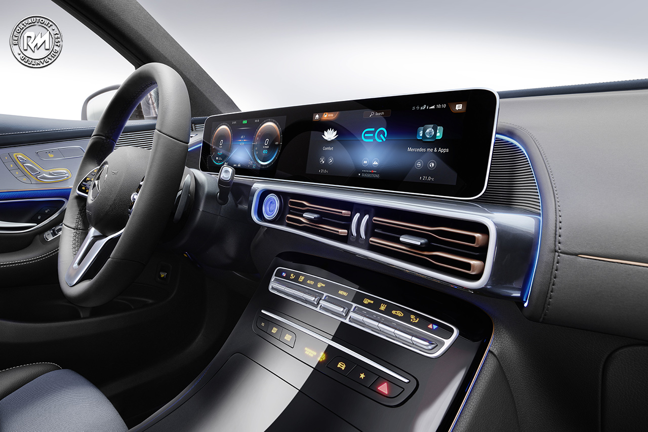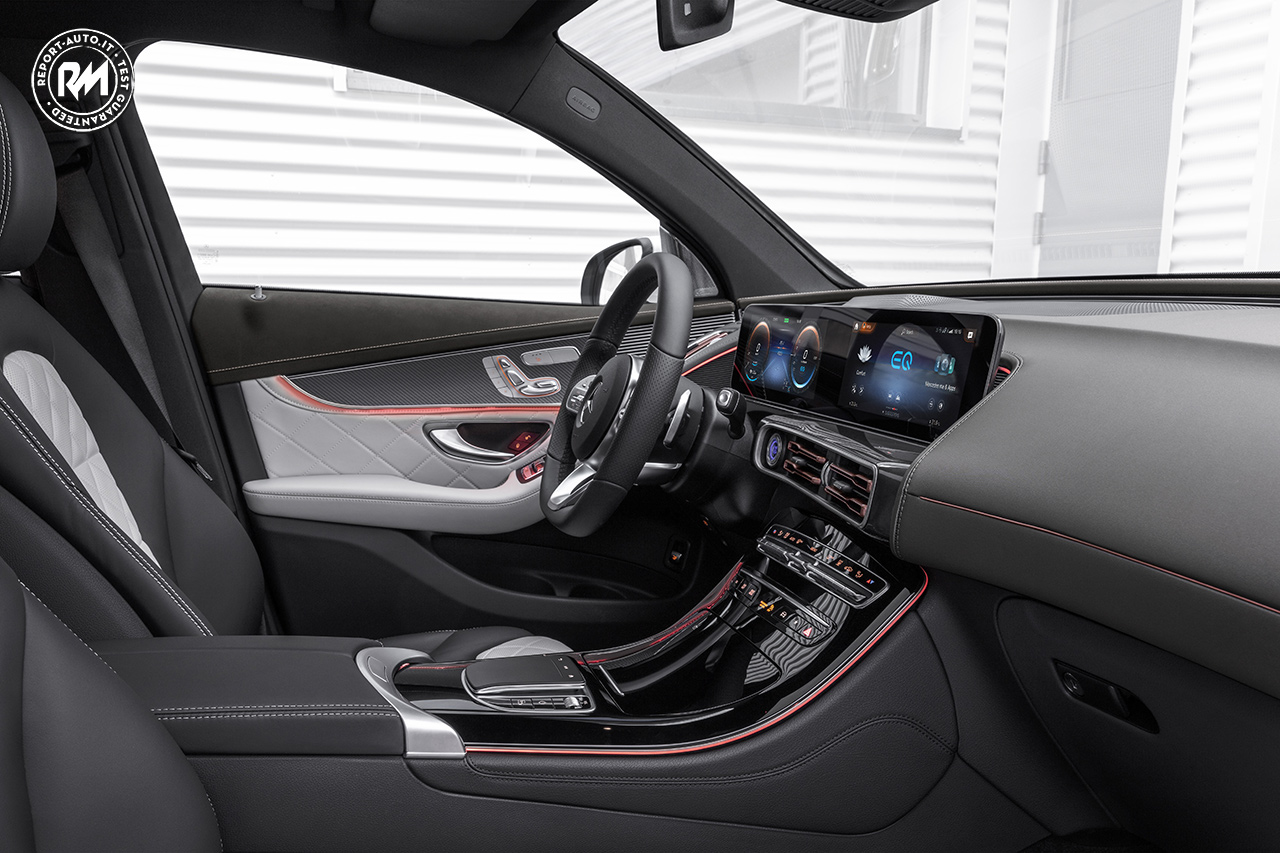 Gli interni rispecchiano la massima tecnologia presente in casa Mercedes-Benz, l’ultra evoluto sistema MBUX fornisce grazie ad un doppio display da 10,3 pollici, una quantità infinita di informazioni.