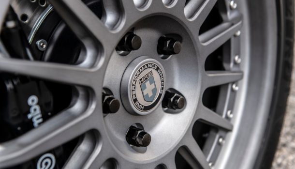 Si sposa alla perfezione con la griglia originale BMW ed ai bordi dei finestrini realizzati in grigio titanio Cerakote, con un set di ruote forgiate a tre pezzi HRE color canna di fucile.