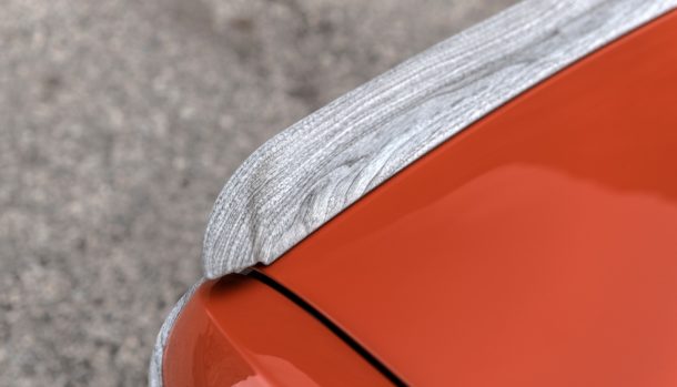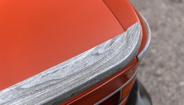 La linea di cintura originale della vettura è realizzata con una venatura di legno idro-immersa così come lo spoiler posteriore, rivisitato.