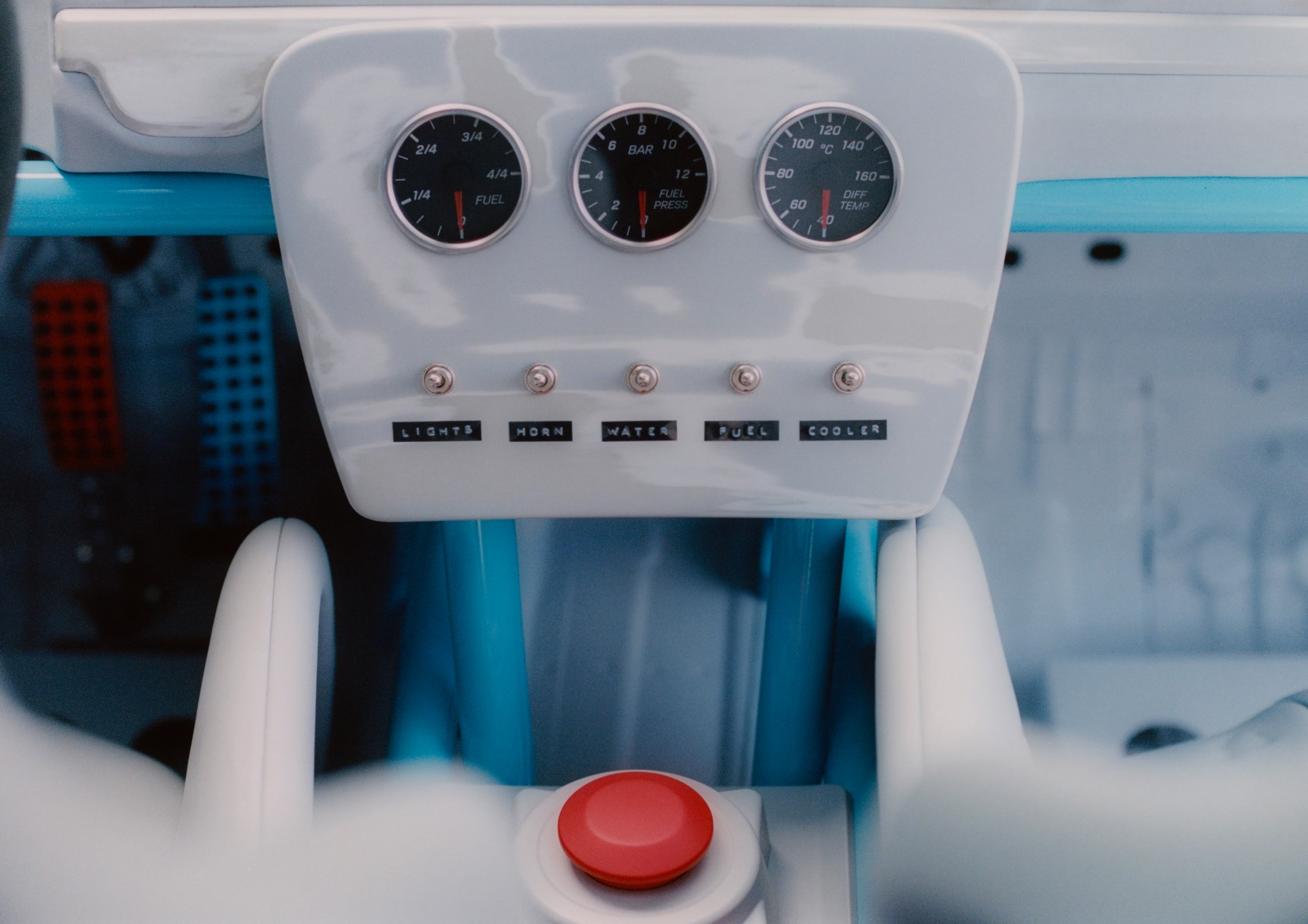 Altra novità sono i sedili sportivi con cinture di sicurezza a cinque punti: alle loro spalle è presente una gabbia di sicurezza, un roll-bar, un estintore ed una tanica.
