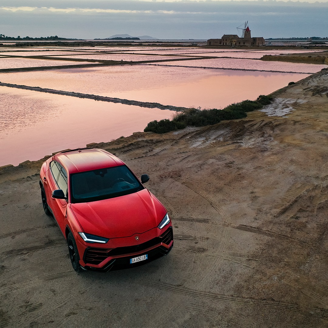 A Trapani il fotografo Stefano Guindani ha immortalato una Lamborghini Urus , di colore rosso, il SUV più veloce al mondo, nello scenario delle saline di Marsala, ma anche alla Torre di Ligny a Trapani o in pieno centro.