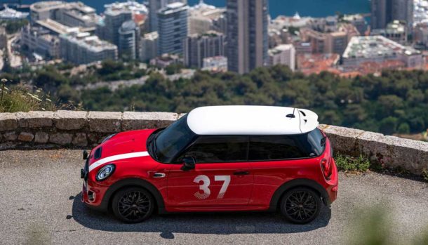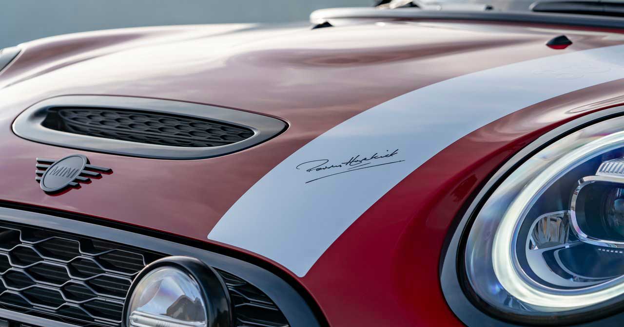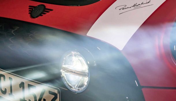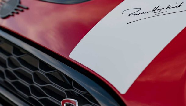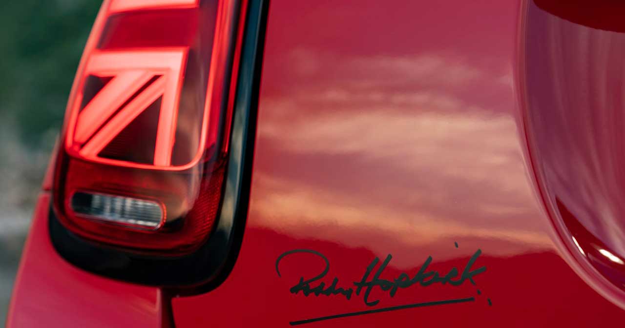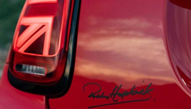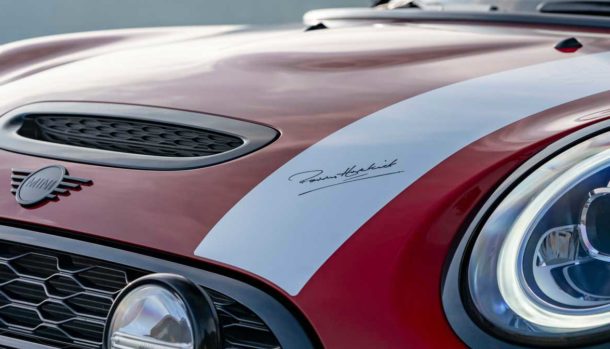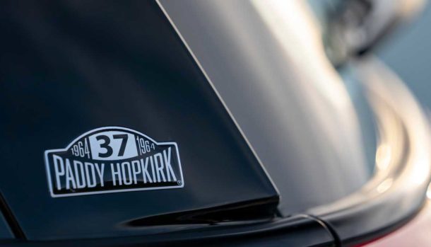 Immancabili le cornici per i fari e le luci posteriori con design Union Jack, adesivi con la scritta “Paddy Hopkirk Monte Carlo” e una sola striscia bianca sul cofano sul lato del guidatore, che come il portellone del modello in edizione speciale reca la firma del vincitore di Montecarlo 1964.
