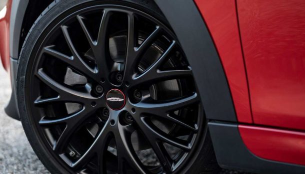 La vettura sarà dotata di cerchi in lega leggera John Cooper Works da 17 pollici nel design Track Spoke Black oppure a avrà cerchi forgiati in lega leggera John Cooper Works da 18 pollici in Design opaco Cross Spoke Jet Black .