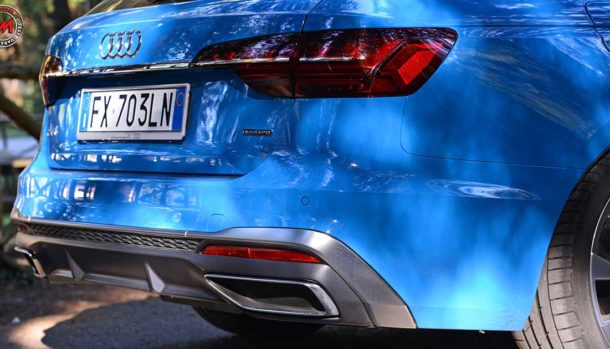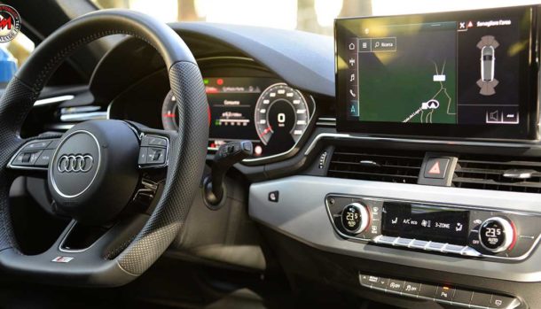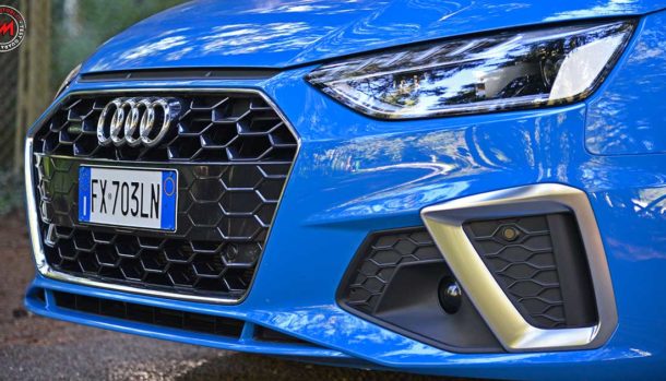 Nel recente upgrade cui è stato sottoposta la A4, spicca non solo la presa d’aria frontale, ma anche la calandra riutilizzata ed i nuovissimi gruppi ottici, belli e funzionali, perché durante la guida notturna, assicurano una visibilità, notevole.