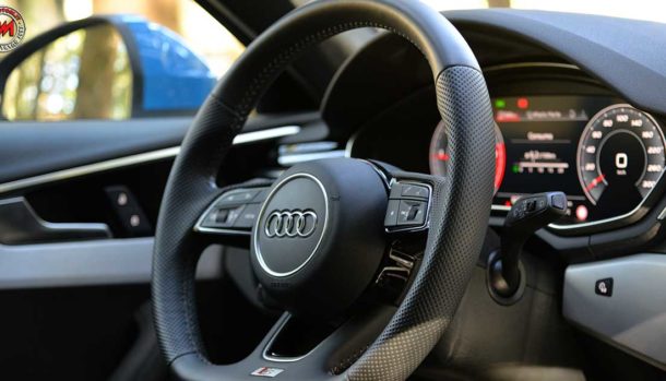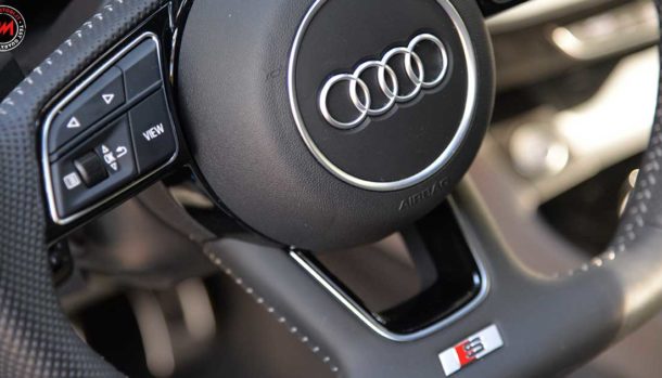 La osservi e sembra esser acquattata, pronta per scattare: la vettura oggetto del nostro test drive è dotata dell’allestimento S Line, quello in pratica più sportivo, che prevede, tra l’altro, un assetto ribassato di oltre 20 millimetri, cerchi da 19 pollici dal design specifico, ed una serie di cromature che esaltano particolari degni di nota, come le cornici delle prese aria laterali frontali.