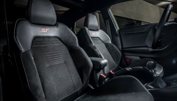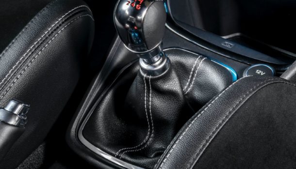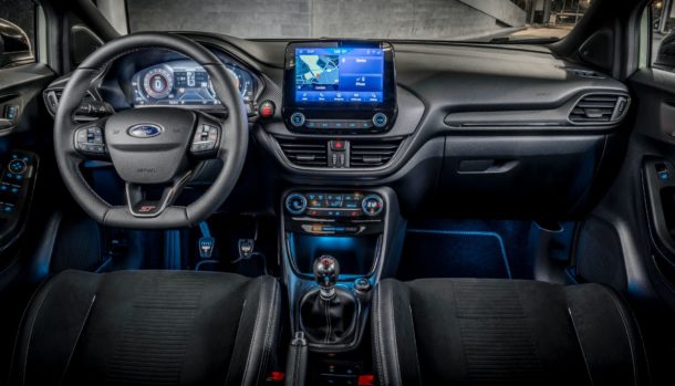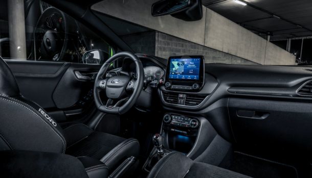 Nell’abitacolo spiccano i sedili Recaro, il volante in pelle con fondo piatto ed il pomello del cambio ST.