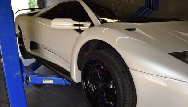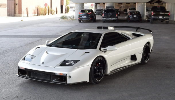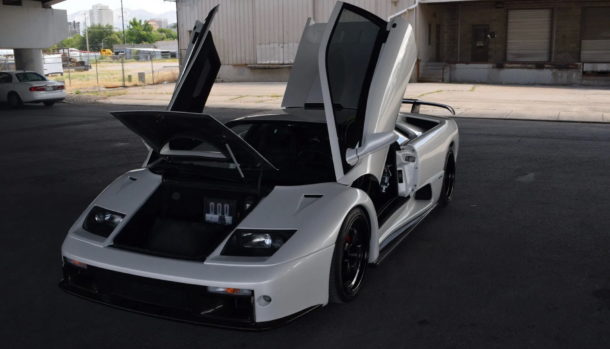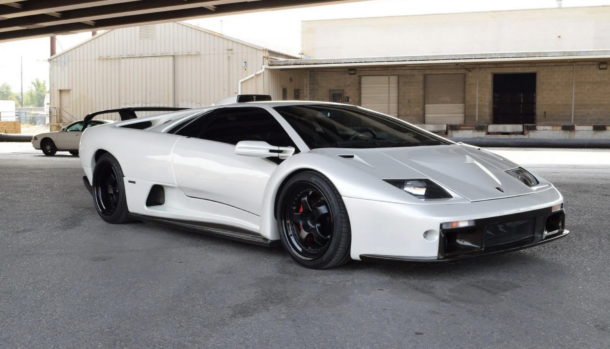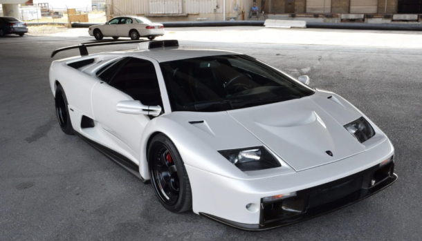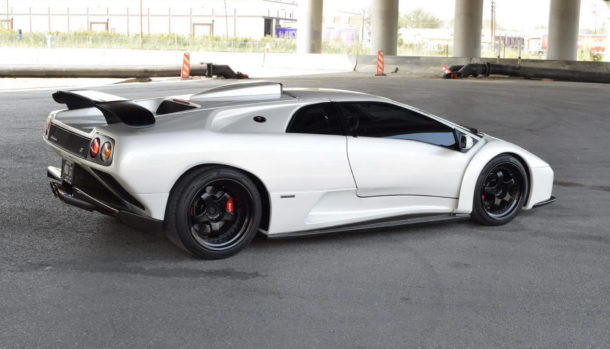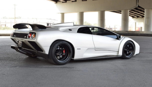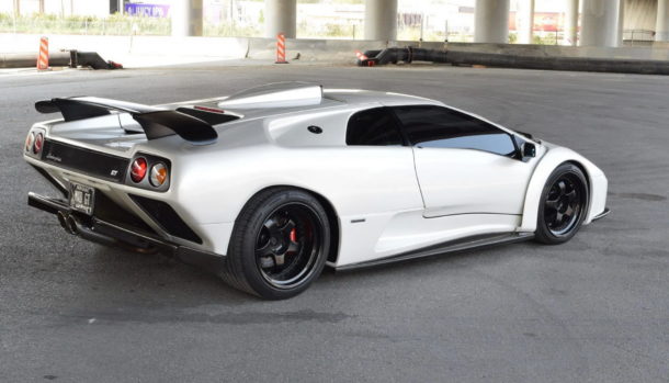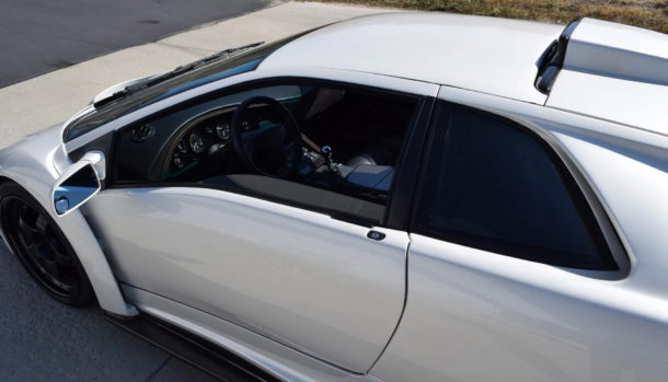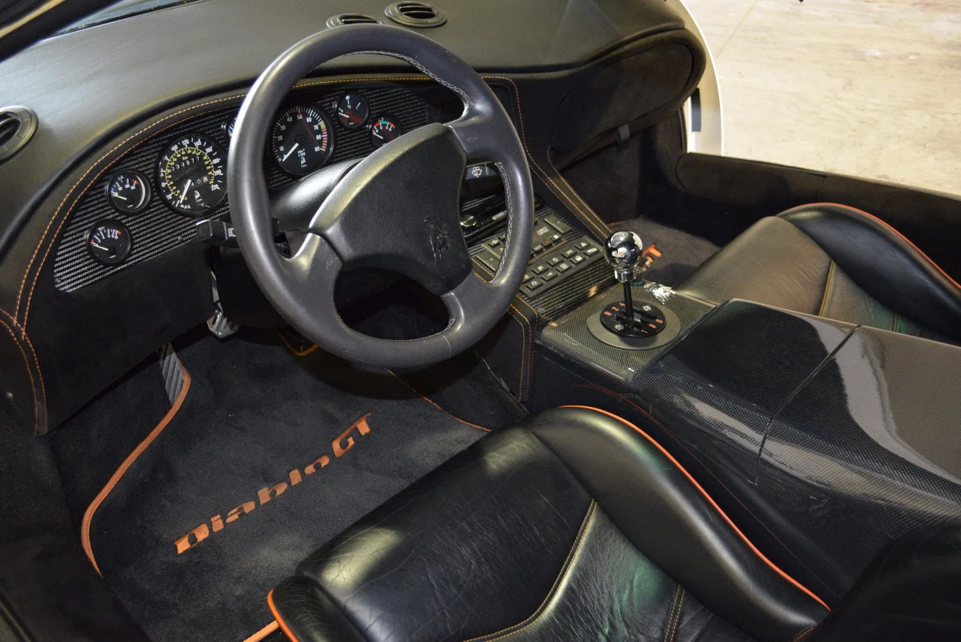 L’auto che attualmente Bring a Trailer vende, non è una Diablo GT originale, ma una vettura del 1991 che si “atteggia” a GT. il cofano, i paraurti, i pannelli bilancieri, le minigonne laterali, l’ala e il diffusore di questa Diablo sono tutti in fibra di carbonio e sono stati acquistati da Lamborghini Dallas circa 10 anni fa.