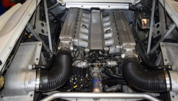 Secondo l’annuncio pubblicato da Bring a Trailer, il motore è stato completamente ricostruito dal precedente proprietario nel 2005 ed il V12 da 5.7 litri che equipaggia la vettura può sviluppare una potenza di 492 CV con una coppia di 580 Nm .