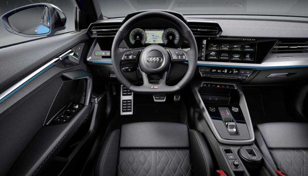 Nuova Audi A3 Sportback 40 TFSI e ha una potenza massima di 204 cavalli e 350 Nm di coppia massima.