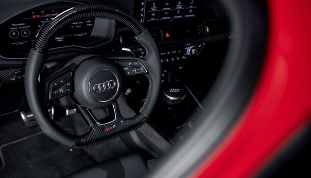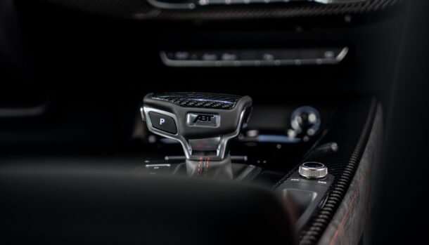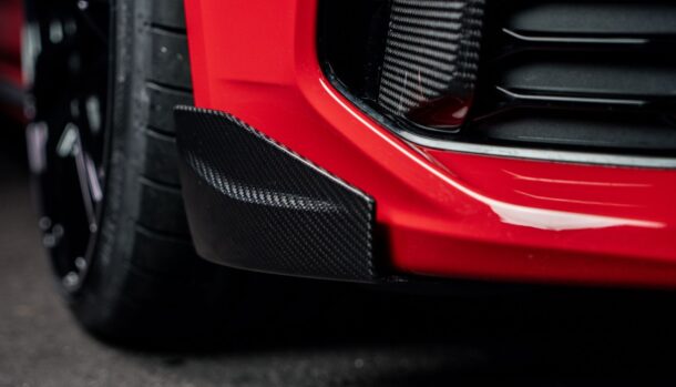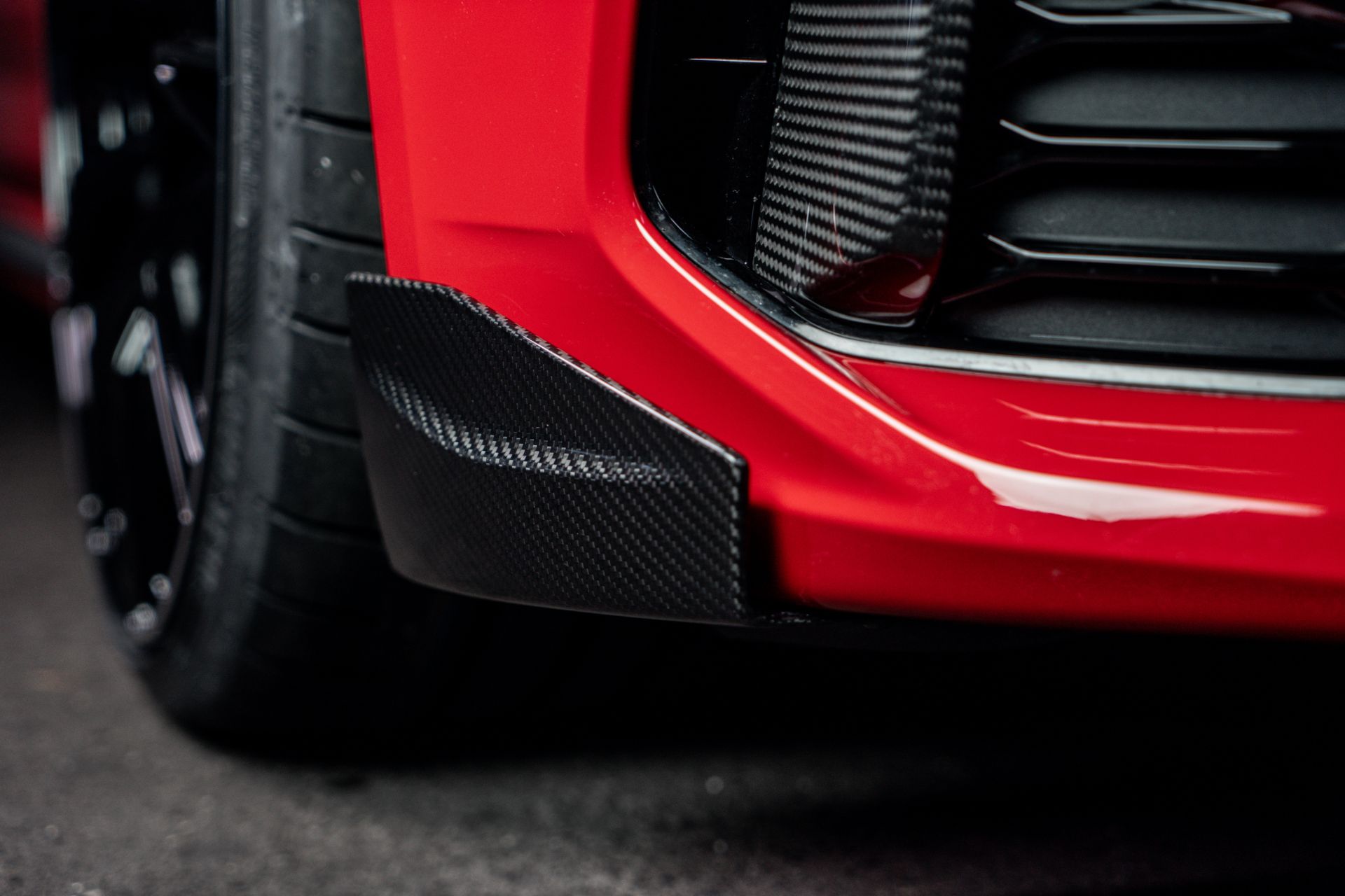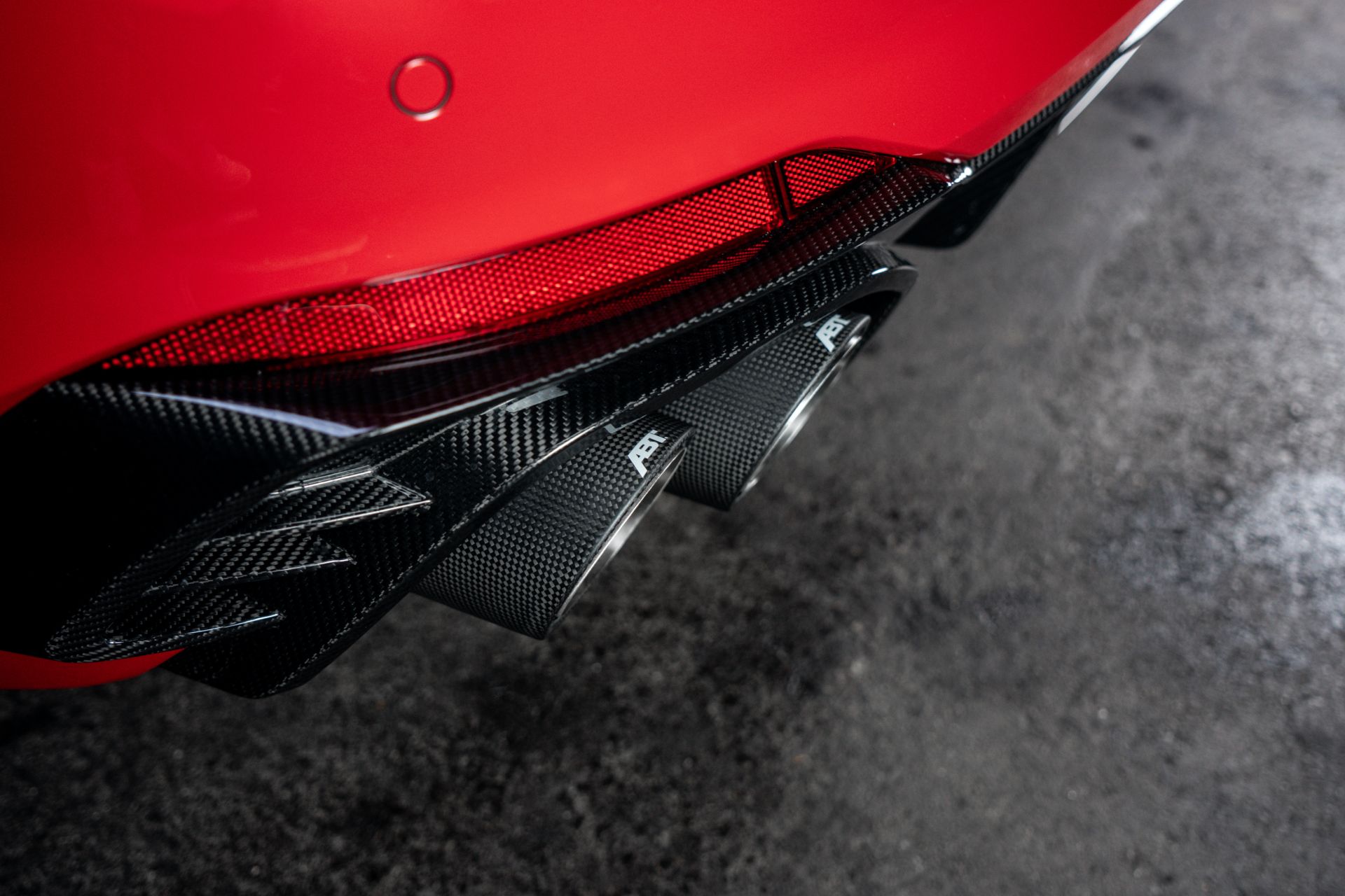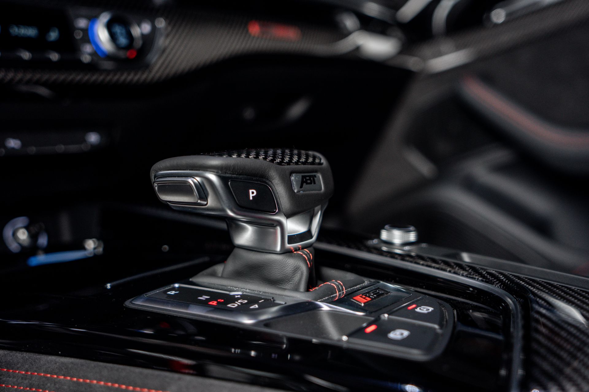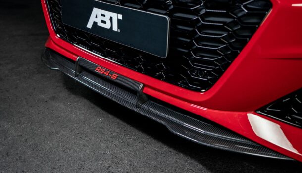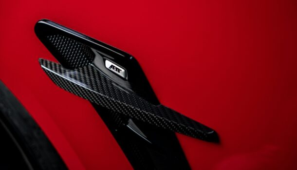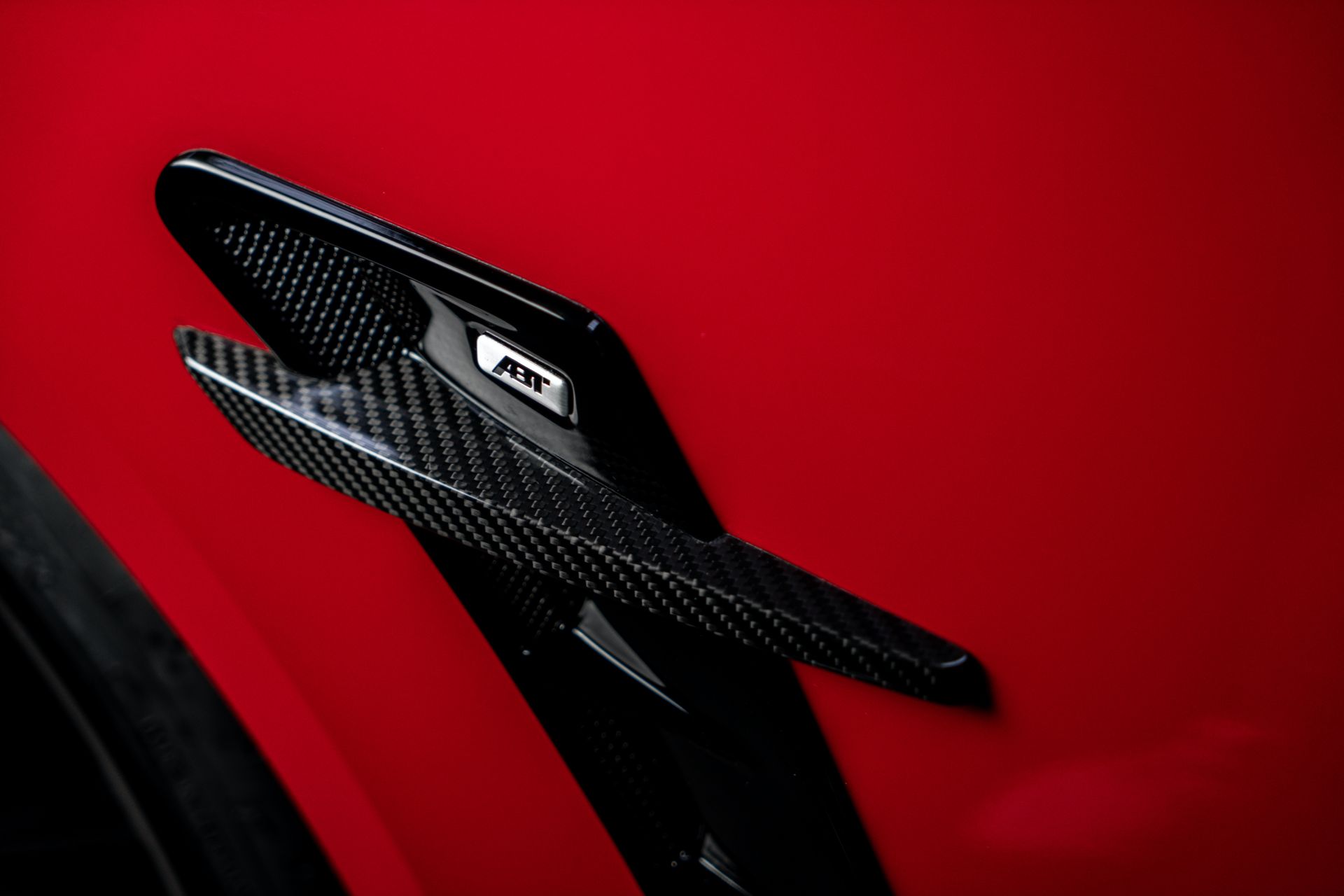 Per la parte estetica esterna è stato assemblato l’ABT Aerokit, che include lo splitter anteriore ABT, una griglia speciale per le prese d’aria, le alette in fibra di carbonio, gli inserti delle minigonne laterali e lo spoiler posteriore in carbonio.