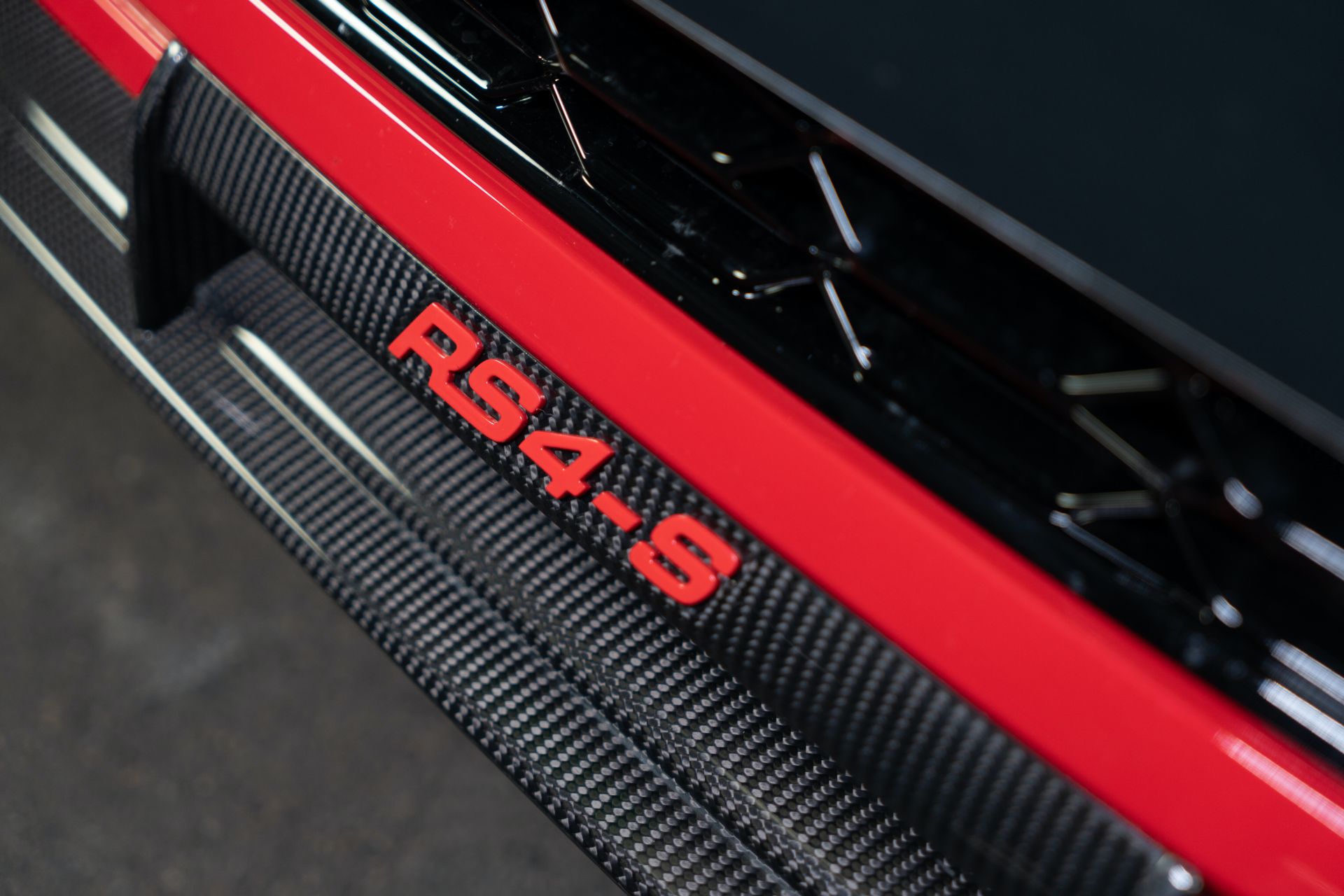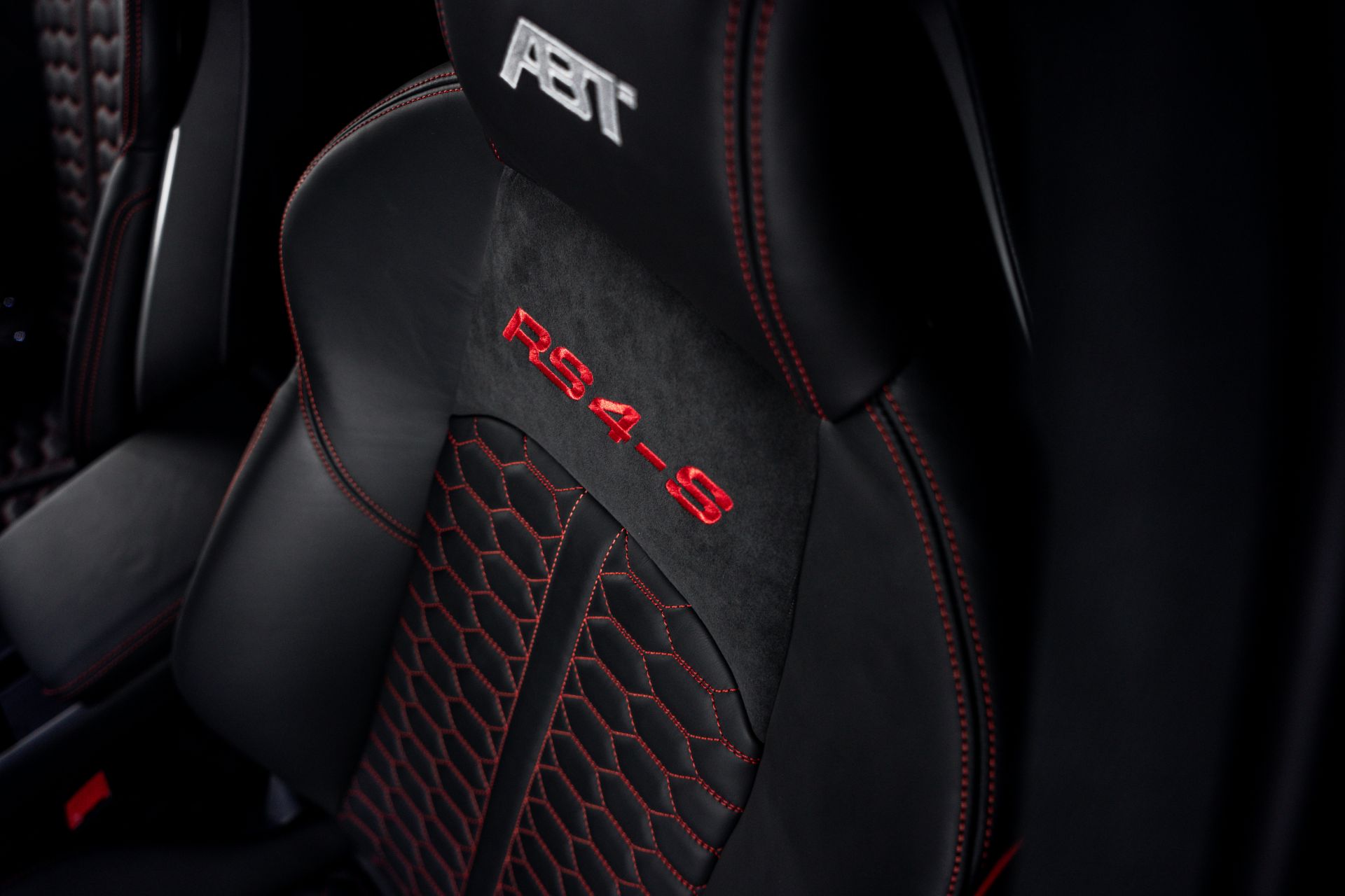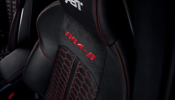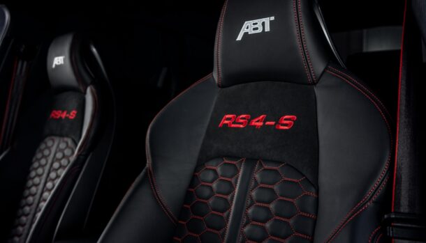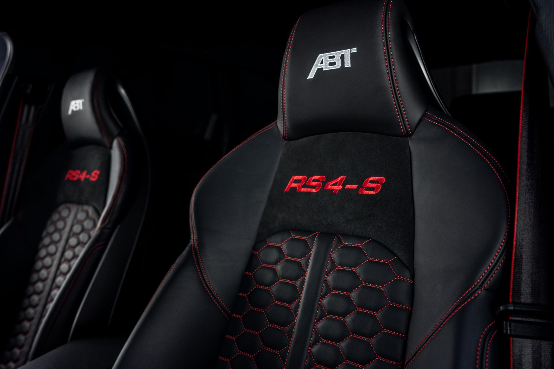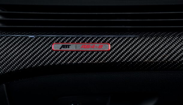Il tuner tedesco non ha tralasciato l’abitacolo, che viene personalizzato con i loghi RS4-S posti sugli schienali dei sedili, sui pannelli delle portiere, sui tappetini, oltre ad un badge applicato sul cruscotto.